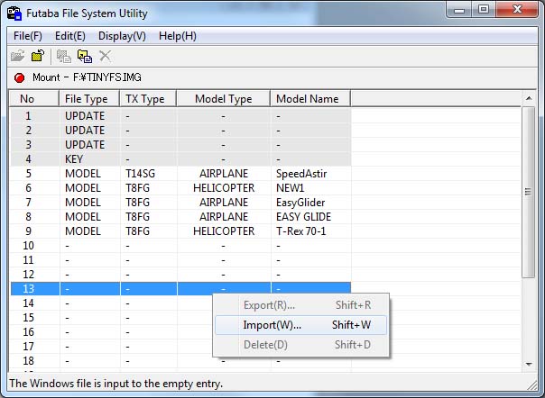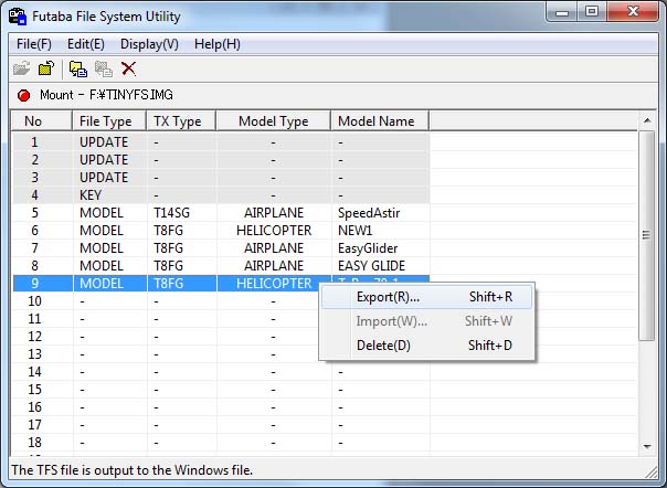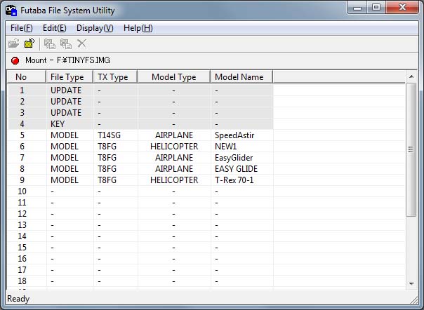 Software FFS - Futaba File Utility V4.0