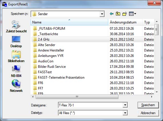 Software FFS - Futaba File Utility V3.0 -> Für Logdaten lesen erforderlich. (T14SG/FX22)